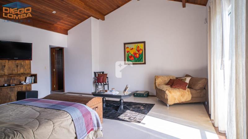 A suíte master tem 58 metros com teto catedral.