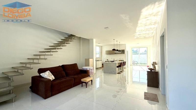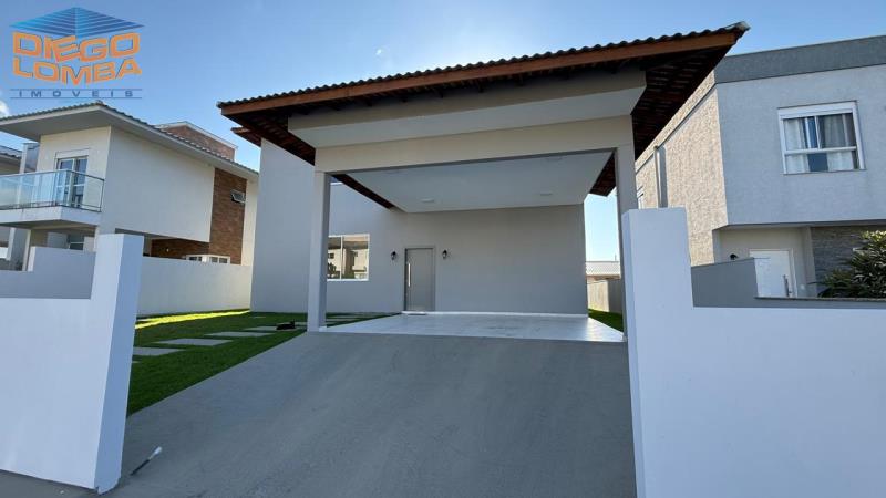 Casa nova, elevada, com gramado, 2 pisos, ampla cozinha integrada a sala de estar/jantar, 2 suítes espaçosas e 1 suíte master com baywindow, área de serviço ampla e lavabo, área de lazer com churrasqueira.